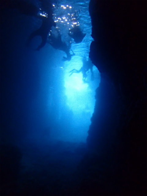 浅瀬に移動するころには、すっかり呼吸も落ち着き、青の洞窟へ。