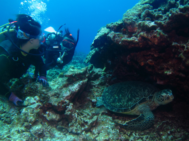 1ダイブ目からウミガメにも出会え、3ショットも無事に成功!