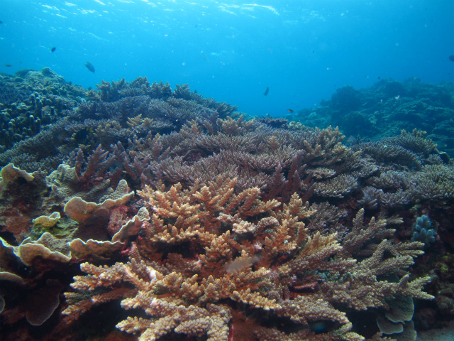 ユビエダハマサンゴに群れる魚たちは、まるで竜宮城のようでした!