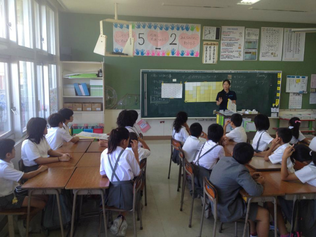 今回は総勢65名の生徒さん達に向けて、サンゴや海の話をさせていただきました。