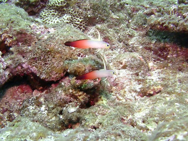 ・ハタタテハゼは、サンゴ礁域の斜面やドロップオフに生息し、目は真ん中についています。