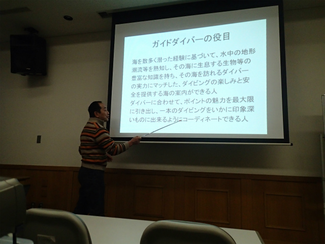 冬場に増えてくるウミウシについて、現役のインストラクター・ガイドである、今川さんの講義を受けてきました。