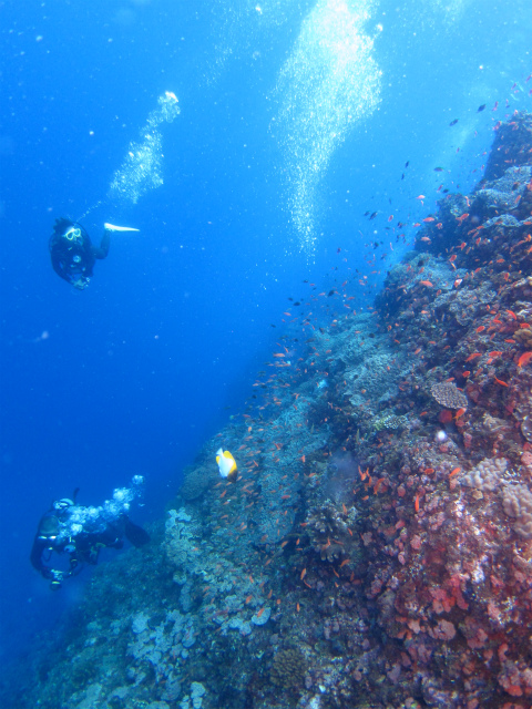 ドロップオフ沿いのサンゴや魚たちは圧巻で綺麗でした〜!