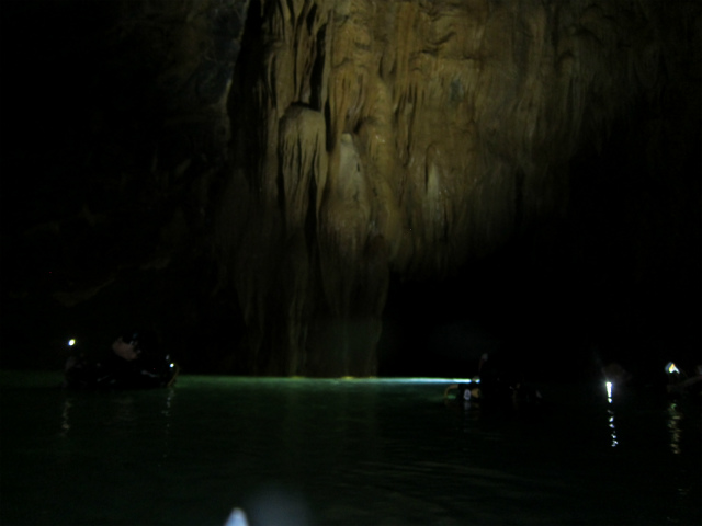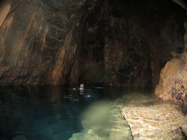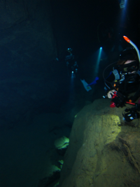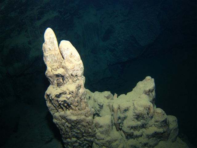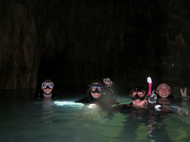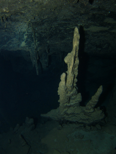 地上でしかできる事のない鍾乳石が水中で見れる。