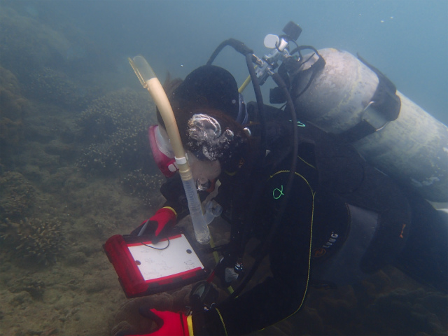 今日はお店前のポイント、砂辺で調査ダイブをしてきました。
