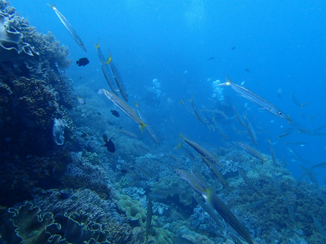 砂辺のカマスの群れは、慶良間に引けを取らないと思います!