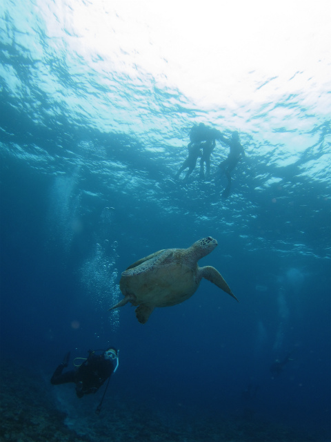 船の近くで大きなウミガメに出会えましたよ!!