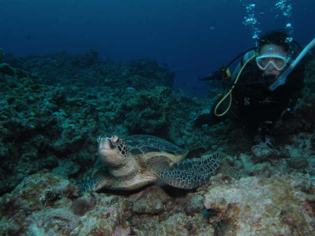 ラストのカメ探しも見あきてしまうくらいに大きなアオウミガメに遭遇できました~
