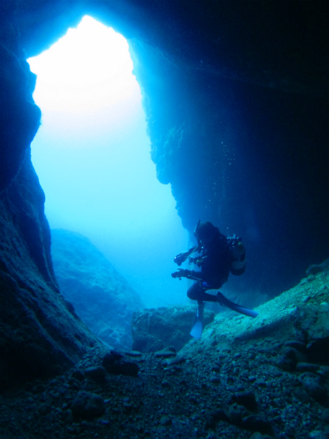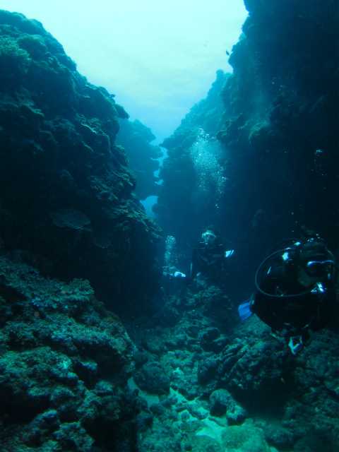 2本目には、大きな岩がゴロゴロしている上を漂ったり、ダイバーになると行くことのできる、クレパスを上からのぞいたり。