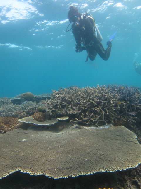 サンゴのお父さん横井さんのお誘いで、周りがゲストが居る中、スタッフのみで調査ダイブです(笑)
