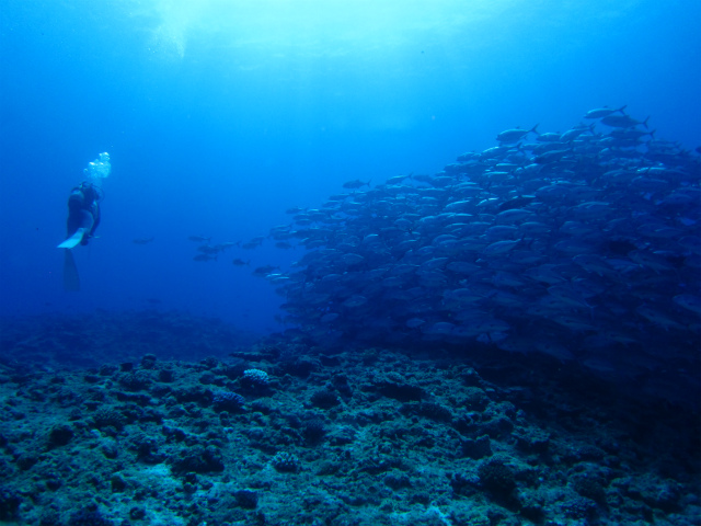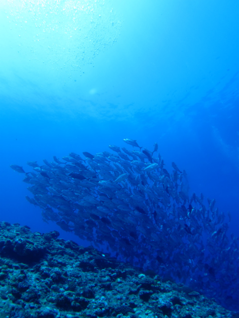粟国といえば、初夏にツアーとしてギンガメアジの群れを見に行っていますね。