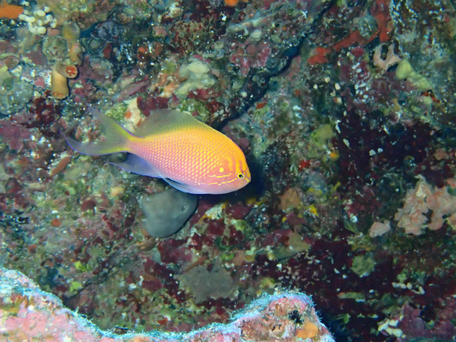 1本目の水慣れから、キンギョハナダイ・キホシスズメダイの群れをじっくり観察。