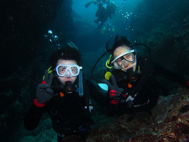 『初めてのダイビング。初めは息ができるか不安でしたが、いざ潜ってみるとめっちゃ面白かったです。水温・気温も雨が降っているにも関わらず暖かく沖縄の海をいっぱい楽しめました。魚もカラフルなものが多く、青の洞窟も綺麗で良い体験をさせていただきました!!』