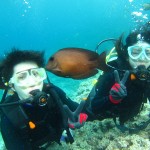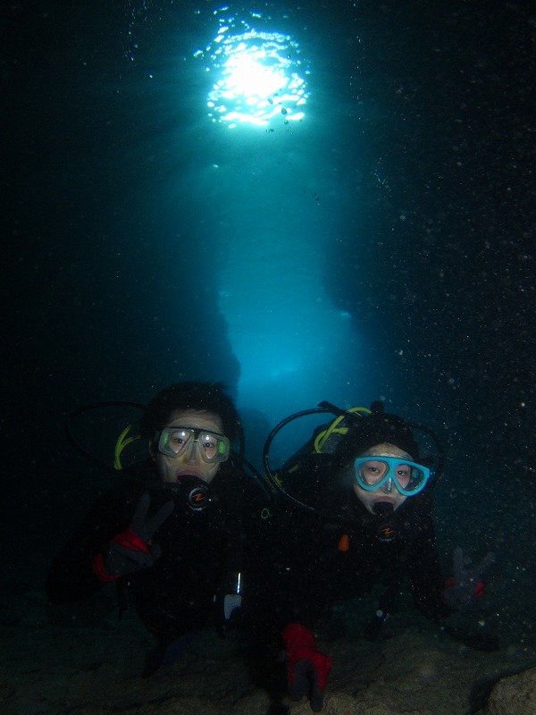 一年前に体験ダイビングを経験したお二人は、あまり良い記憶がないそうです。それでも沖縄なら・・・ということで、参加を決意したそうです。1本目にしっかり慣れて、2本目に洞窟を楽しむ。不安と緊張の様子でしたが、思いっきり楽しめましたよ!!