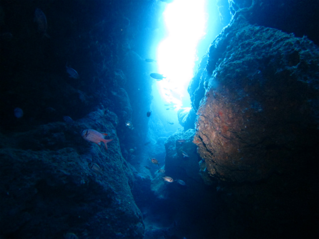 マクロの目線は一切持たず・・・地形にまっしぐら!!今日は天気も良かったので、本当に光が綺麗!!少し、透明度が気になりましたが、光のパワーでとっても気持ち良いダイビングとなりました。