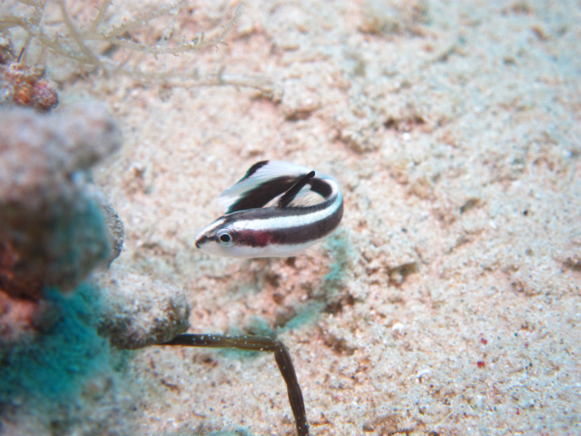ただひたすら砂地を泳いできました。いつもの威勢が無いトオアカクマノミは、なんだかイソギンチャクからでてきません。可愛い幼魚がちょろちょろ♪