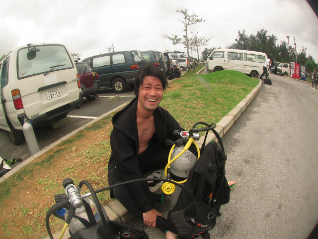 本日は、都合により偶然沖縄に来ていた地元の友人とダイビング!!