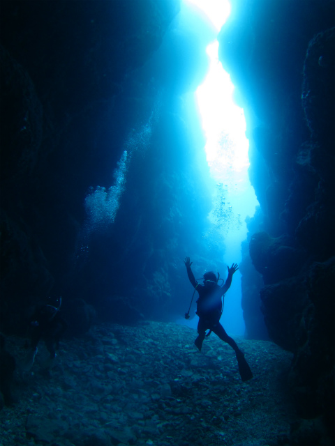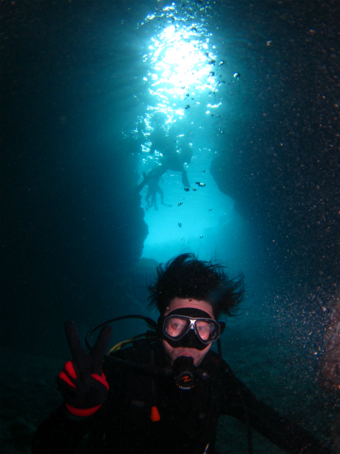 初めは耳抜きと緊張に戸惑いはしていましたが、洞窟をでる頃には、すっかり水中になれていました。