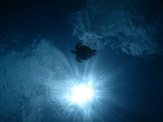 なんとかアオウミガメと一緒に泳げました(笑)