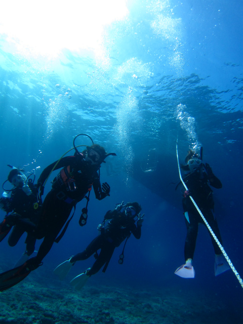 一人は体験ダイビングで、後の3名は、昨年ダイバーになったのは共通点がありました。ダイブ本数こそ別々ですが、水中のスキルは皆上手~♪