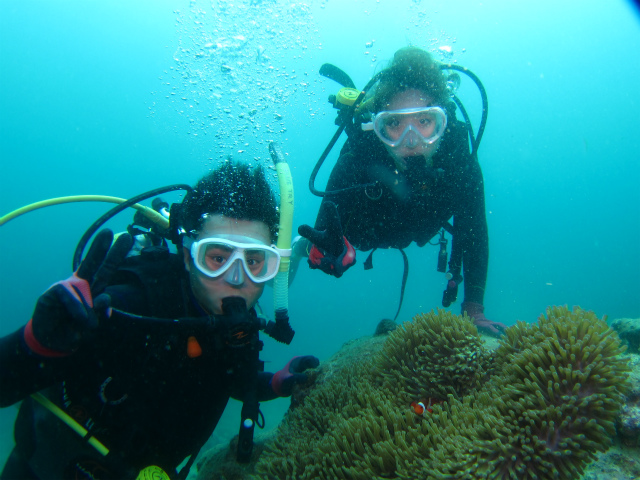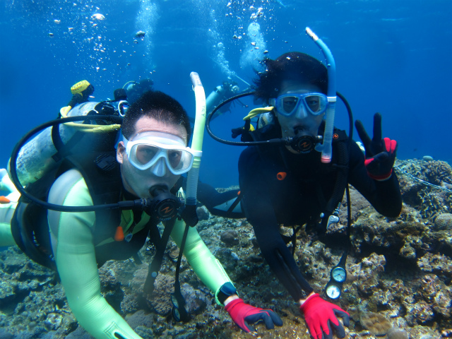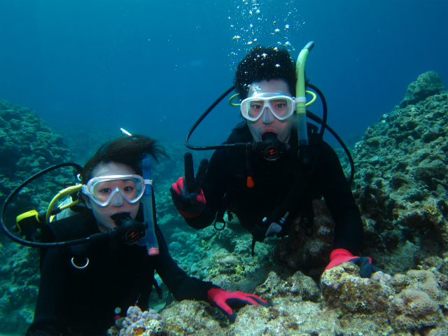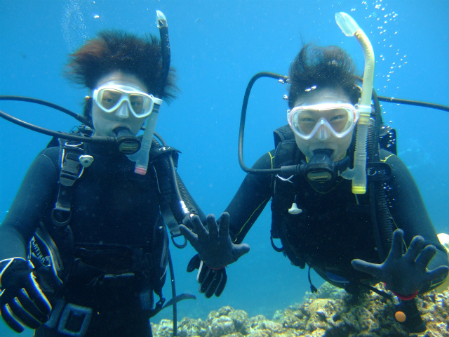 ご家族と一緒のご旅行で、本日は二人で体験ダイビングです。