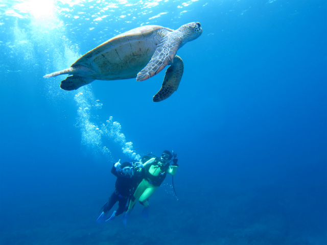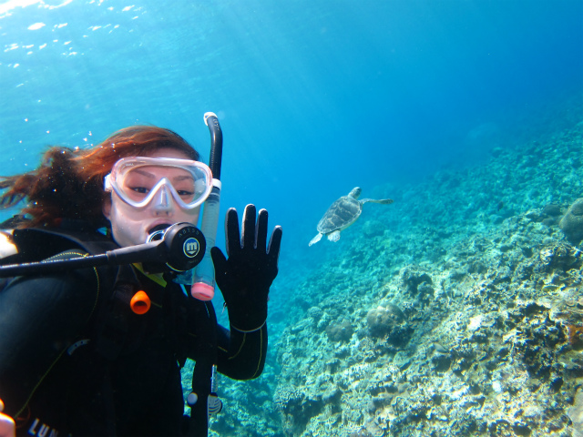 2本目なんて、目の前でウミガメと一緒に泳いだり、写真を撮ったりと盛りだくさん♪