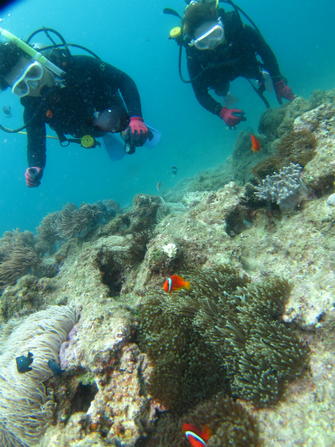 アルファの体験ダイビングは、1本目で慣れて、2本目を楽しむ。