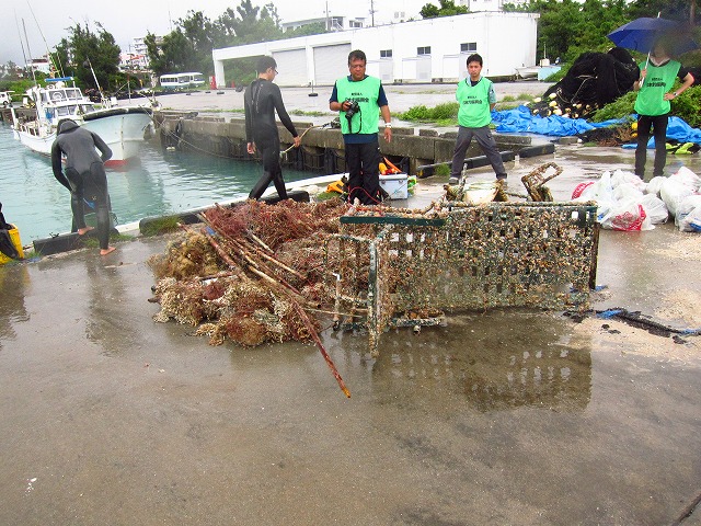さて、日本釣振興会との共催で残波岬の釣り糸撤去に行ってきました。
