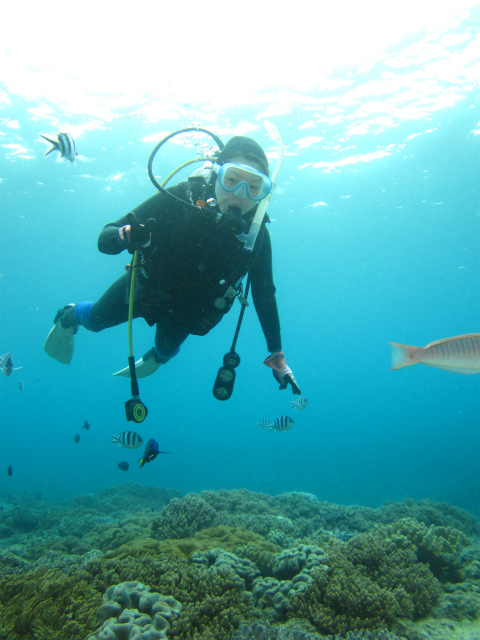 そんな中、ダイビング講習2日目と午後から体験のお客様もいらして、ビーチでのんびり潜ってきました!!
