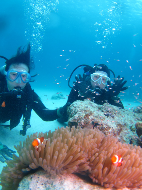 念願のカクレクマノミや魚の群れ!!