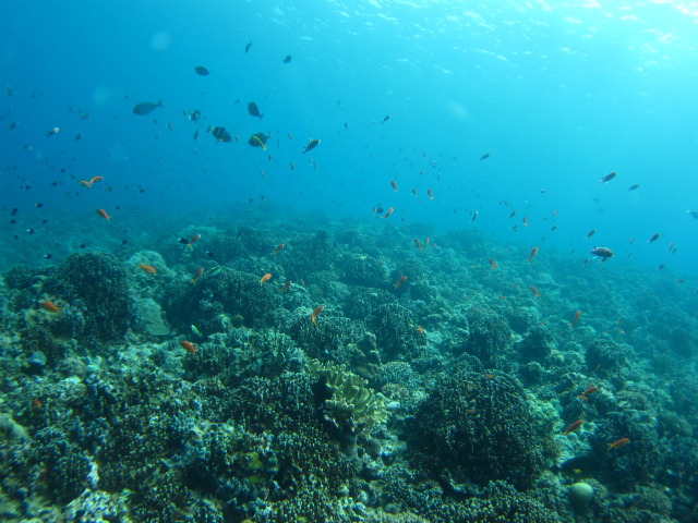 オプションの3本目はサンゴとスズメダイが綺麗なポイントへ。