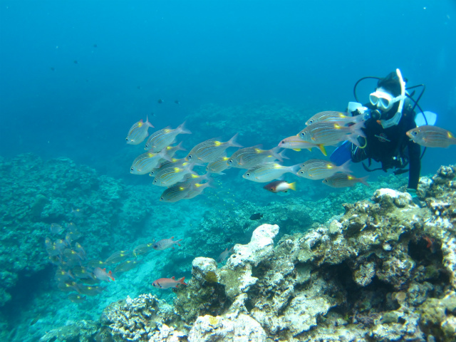 体験ダイバーはマスクに水が入って少し慌てる時もありましたが、もう一度確認して水中へ入るとバッチリOKでしたね!