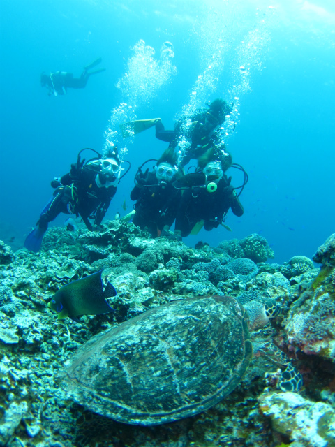 リピーターさんはライセンスを取得されて初めてのファンダイブ。ねーねー2人は初体験ダイビング。