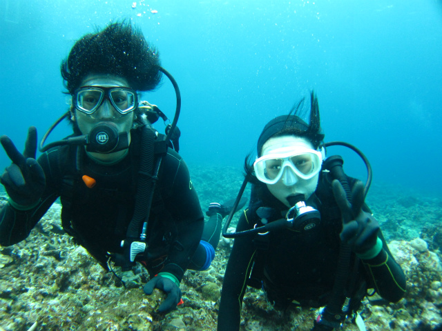 ほのぼのカップルのお二人は以前にも体験ダイビングの経験があるとのこと。