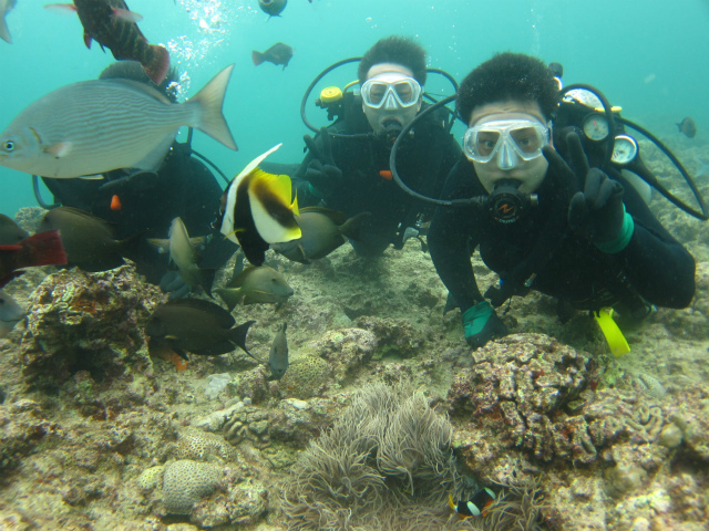 体験ダイバーはマスクに水が入って少し慌てる時もありましたが、もう一度確認して水中へ入るとバッチリOKでしたね!