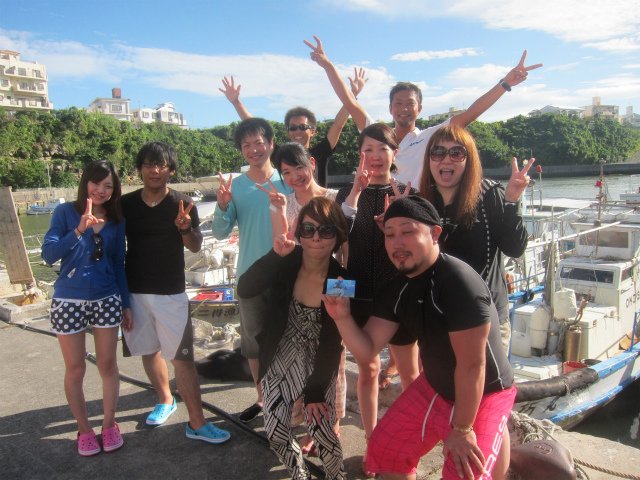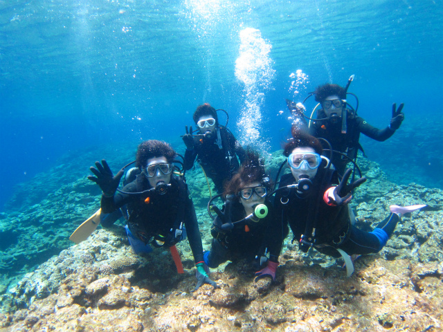 ファンダイバーの彼女と初体験ダイビングの彼氏さん、女子会旅行中の4名、計2組です。