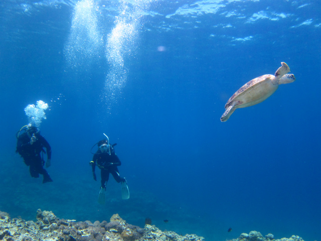 そして、次はウミガメのすぐそばで1人で泳ぎましょう!!
