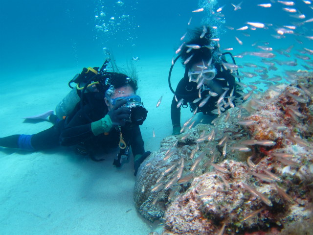 2本目には小さな魚、キンメモドキが何百匹と群れている場所や、白い砂地を堪能。