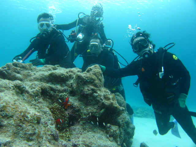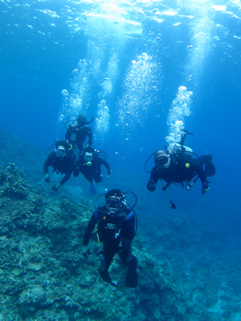 今日は、ひさしぶりにアルファダイブの3人集合で、2組の体験ダイビングと1組のFUNダイビングを楽しんできました!!
