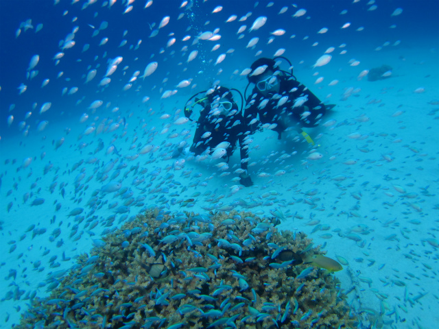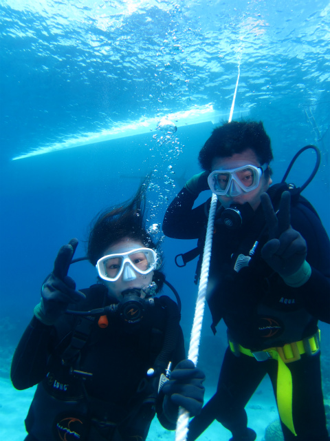 ご夫婦は初めての体験ダイビングという事で、少し緊張されていましたが、1本入るとなんとなく水中の感じがつかめたご様子。
