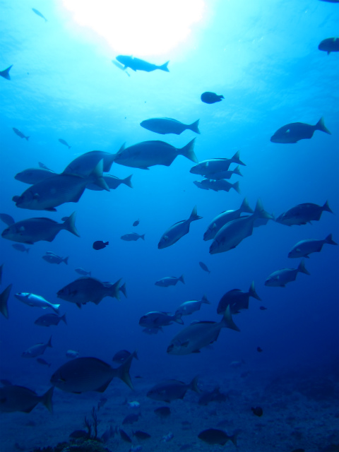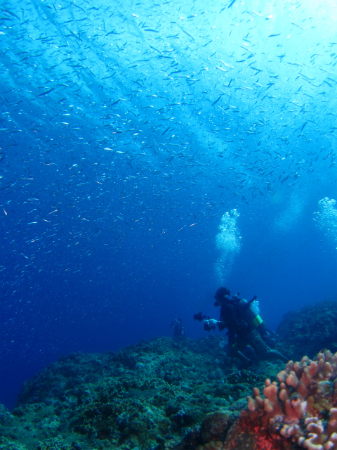 ドロップオフの手前には、小型でしたがカマスが群れていました!!