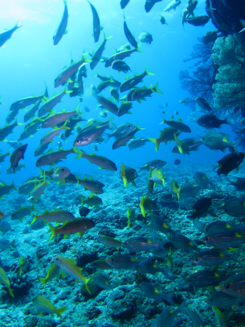 ちなみに、チョウチョウコショウダイの子供と、カマスの群れも見てきました(笑)