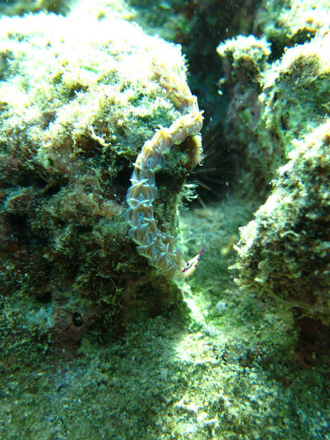視線を落とすと、ミノウミウシや、サンゴに寄生しているイバラカンザシなど。