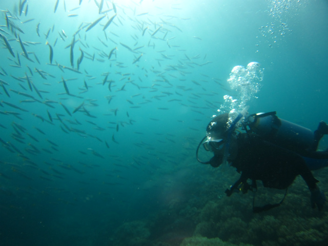 1本目で卒業し、2本目からは不安なスキルを補充するチーム、FUNダイビングと一緒に楽しむチームと分かれ、無事、今日で卒業。