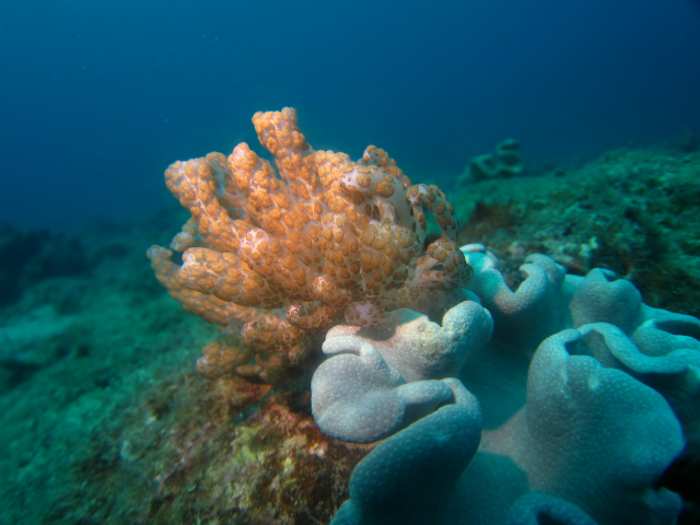 今年の夏は海水温上昇により、サンゴの白化が話題となりましたが、水深10m付近のサンゴはダメージがないように感じました。