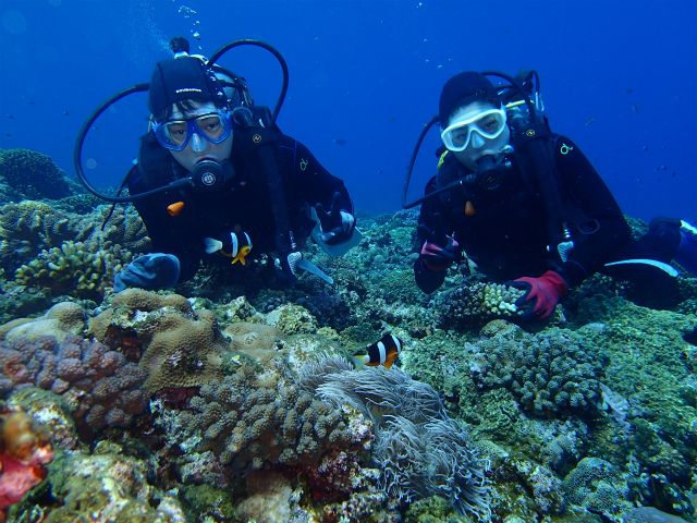 今日は、大学の友達同士というお2人と慶良間体験ダイビングです。