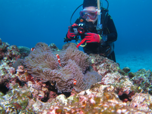 クマノミの仲間や、スズメダイの仲間、べラやブダイなど、人慣れしている魚が多いので、体験ダイビングでも簡単に沢山の熱帯魚達に出会える事が出来ます♪