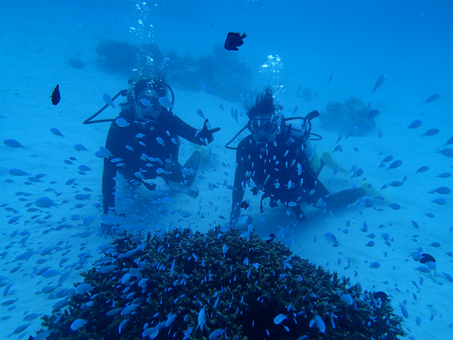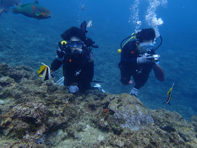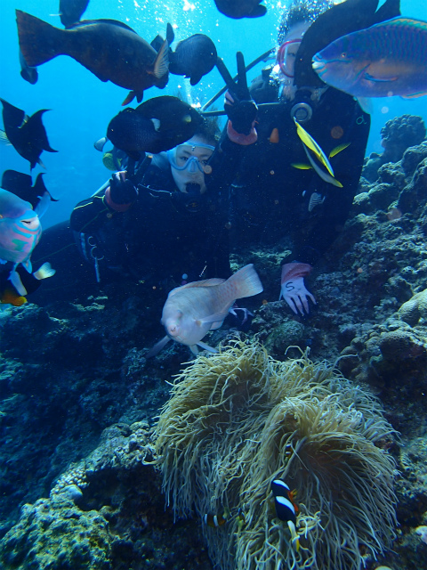 初ダイビングのお2人、事前説明では少し不安がられていましたが、そこは皆が通る道♪