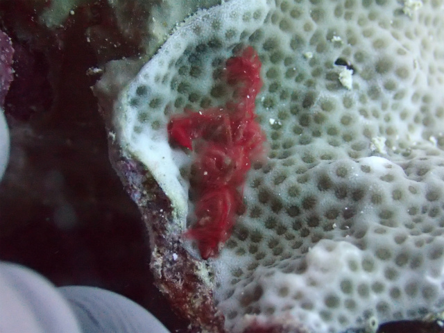 ミズタマサンゴをじっくり観察すると、毛むくじゃらのこの子が隠れている事があります。