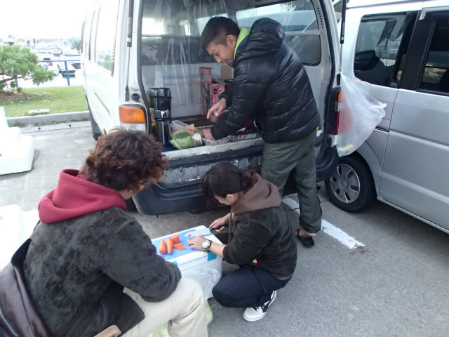 早々と場所を確保し、皆で食材を買い、宴会の準備。